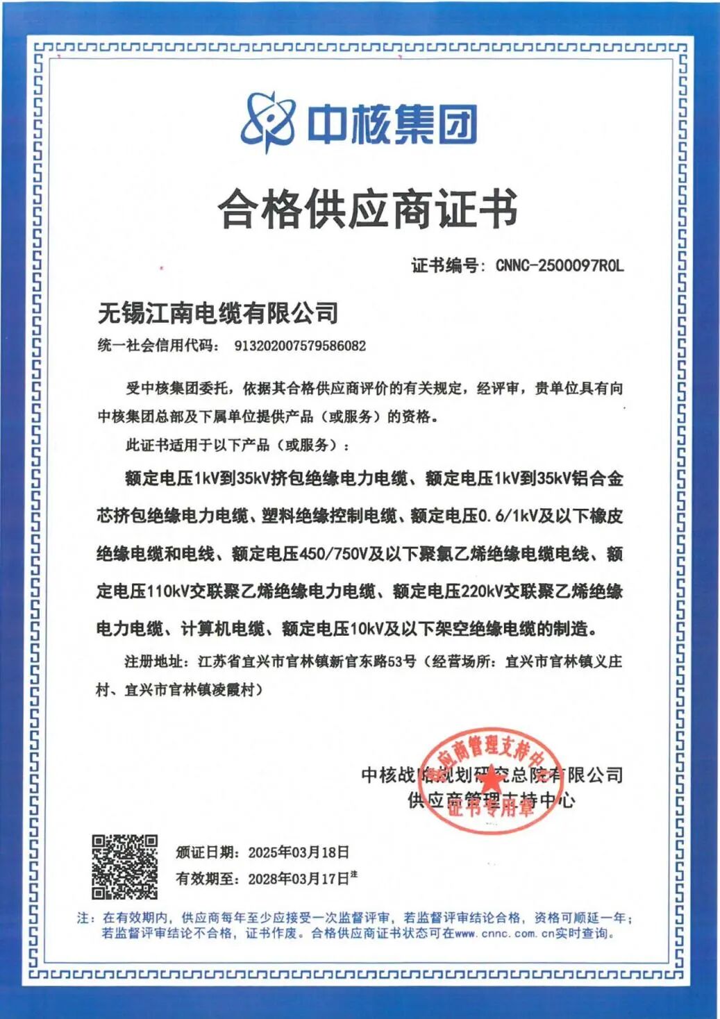 【誠信筑基 匠心領航】江南電纜榮獲2024年度省級守合同重信用企業(yè)
